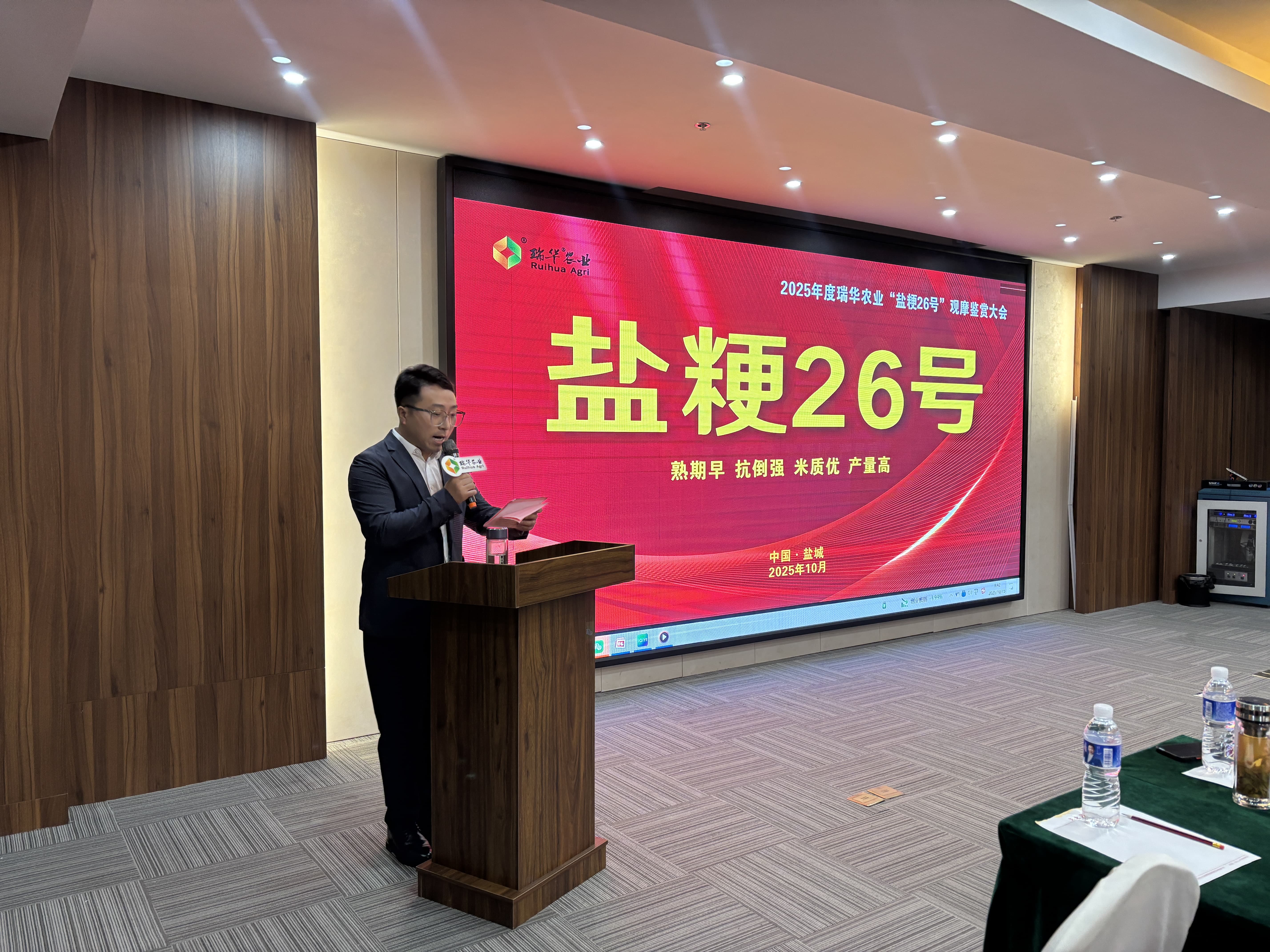 2025年10月14-15日,江蘇瑞華農(nóng)業(yè)科技有限公司在江蘇省鹽城市鹽都區(qū)舉辦鹽粳26號(hào)田間觀摩鑒賞大會(huì),獲得參會(huì)者的一致好評(píng)。